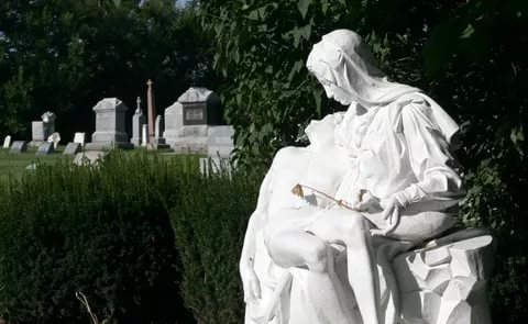 - Божья матерь символизирует умиротворение и бесконечную любовь. Она является матерью для любой души, даже пропащей. Принято верить, что изображение Божьей Матери на надгробии, оберегает душу умершего.